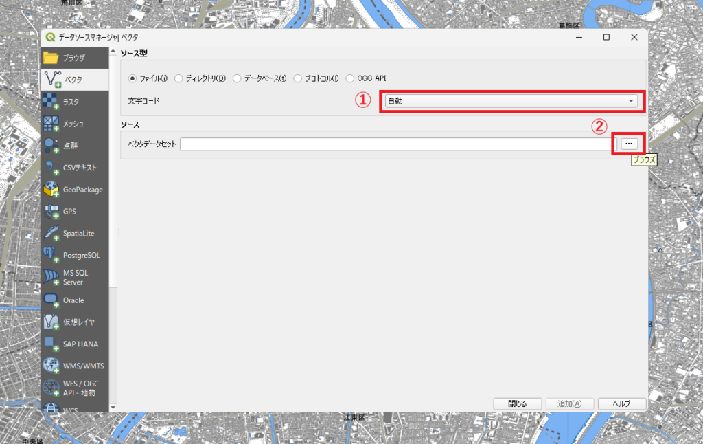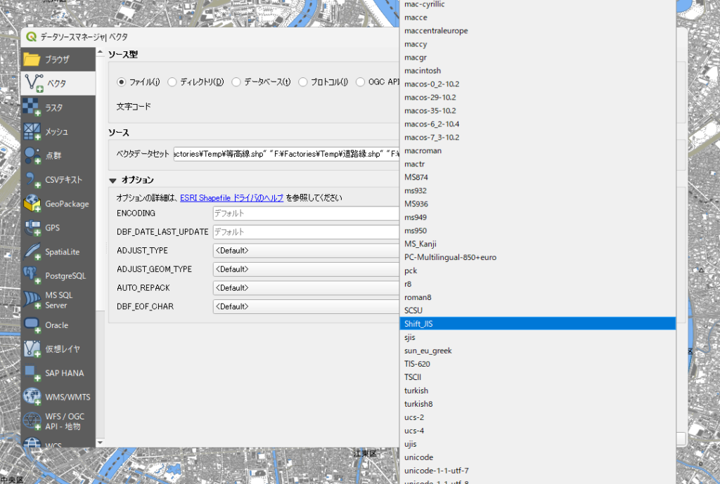 QGISは、『UTF-8』を使用するのが一般的です。しかし、基盤地図情報は『Shift-JIS』でエクスポートされてしまうので属性のフィールドが文字化けしてしまっている可能性があります。