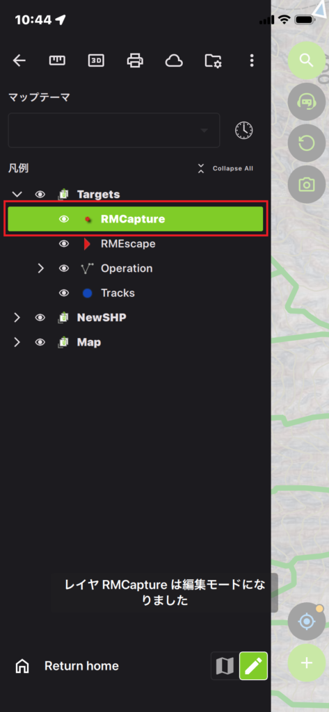 - 座標カーソルを現在地に固定:これにより現在地をもってジオメトリの頂点を追加していけるようになります。