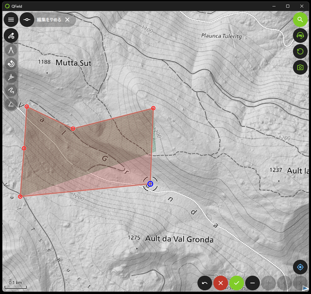 ・✓:ラインやポリゴンの作図の完了です。